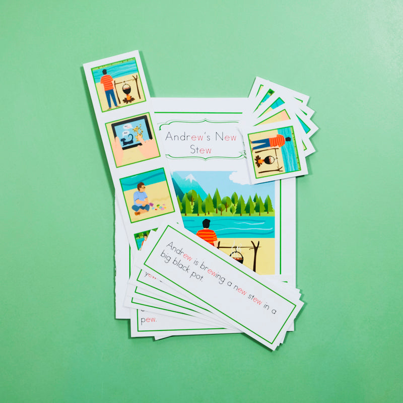 ABC PACKS: Contain 1 Book, 1 Picture Strip with Sentences  and 5 Individual Picture Cards with Sentences.