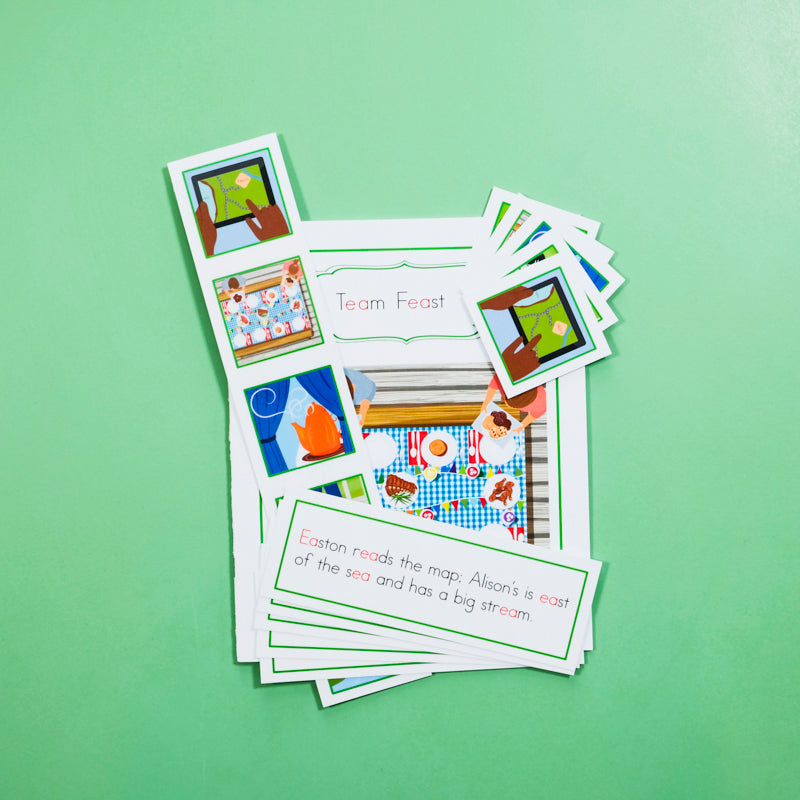 Each part of this pack can stand alone and be used independently from one another or can be used all together as a complete activity. Designed specifically to help bridge the gap between first reading sentence activities, moving to a book with confidence and then working on comprehension immediately with more confidence.